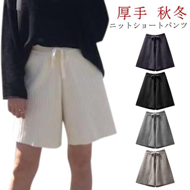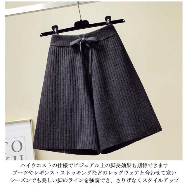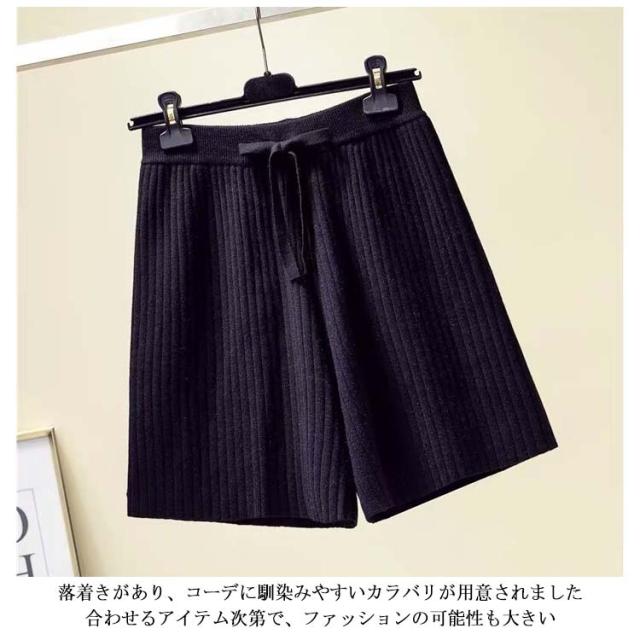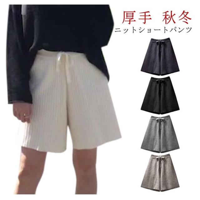 ニットショートパンツ ケーブル柄 ニットワイドパンツ レディース ウエストゴム ストレスフリー 秋 冬 ショート丈 パンツ ニットパンツ ニットボトムス 短パン フリルパンツ カジュアルパンツ 無地 ハイウエスト お洒落 キレイめ 普段着 ボトムス 送料無料