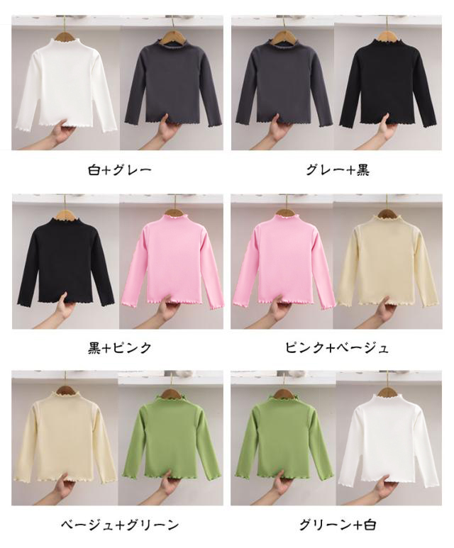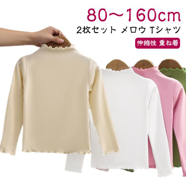 【2枚セット】メロウ Tシャツ 長袖 カットソー 子供服 キッズ 無地 tシャツ 女の子 トップス 長袖Tシャツ ロンT シンプル 重ね着 おしゃれ かわいい 通学 通園 ストレッチ 秋冬 春 インナー フリル 80 90 100 110 120 130 140 150cm