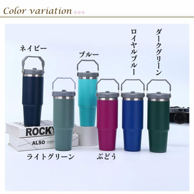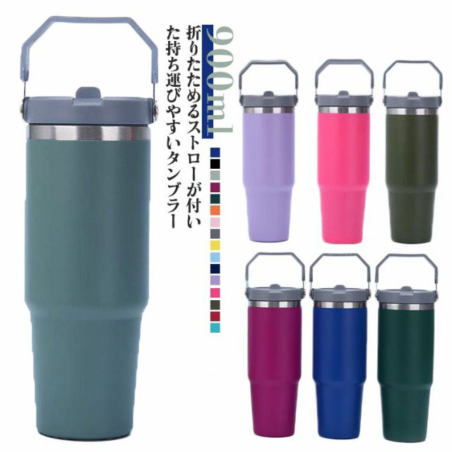 タンブラー 水筒 ストロー 直飲み 真空ウォーターボトル 真空断熱 保冷 保温 広口 ワンタッチ ボトル 900ml ステンレス ステンレスタンブラー ハンドル 大容量 持ち運び アウトドア キャンプ スポーツ 部活 運動会 登山 レジャー