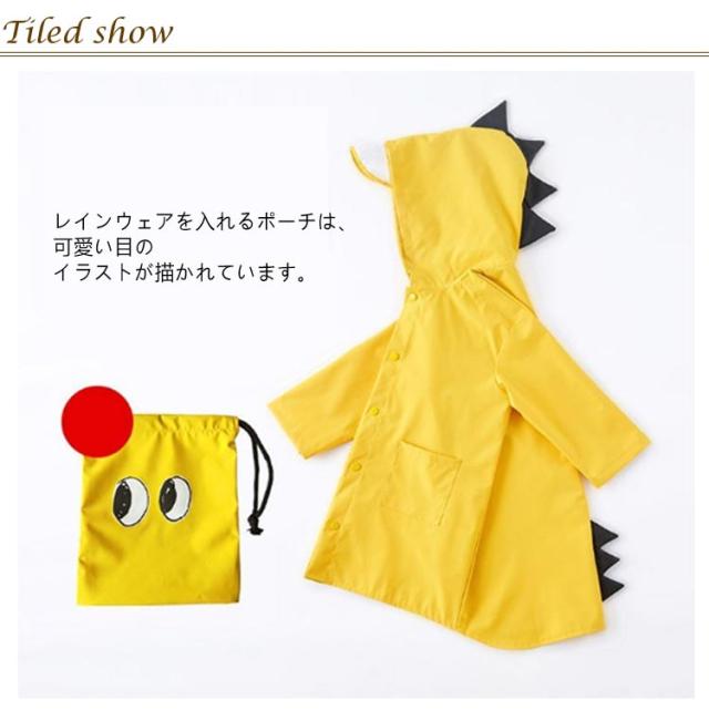 | 収納袋付き 恐竜レインコート 80~120cm 雨の日のお出かけ・お散歩・通園・通学におすすめ! まるできぐるみのようなかわいい恐竜風レインコート。 後ろ姿は目を引くかわいさ☆ フードとヒップ部分には恐竜のたてがみをキュートに再現しています。 フード部分は透明になっているので、雨の日の視界の悪い日も クリアに周囲を見る事ができます。 薄手で動きやすく、軽いのでお子様も動きやすく安心。 レインウェアを入れるポーチは、可愛い目のイラストが描かれています。 | |