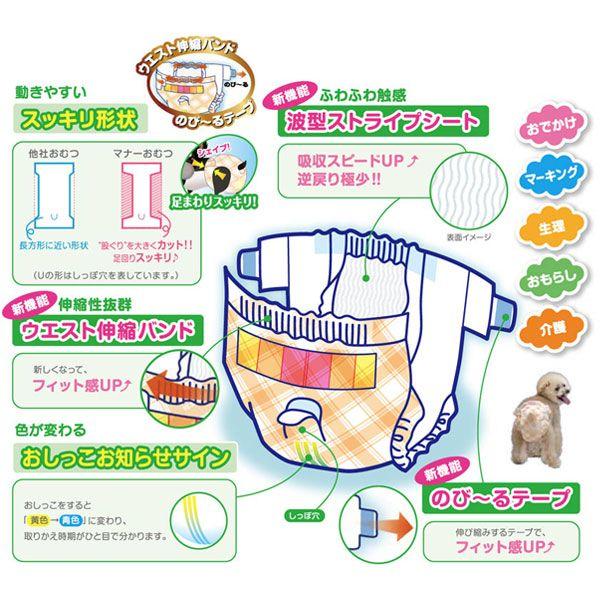 おでかけ・おもらし・生理・マーキング・介護など、パピーからシニアまでずっと安心して使える紙おむつです。