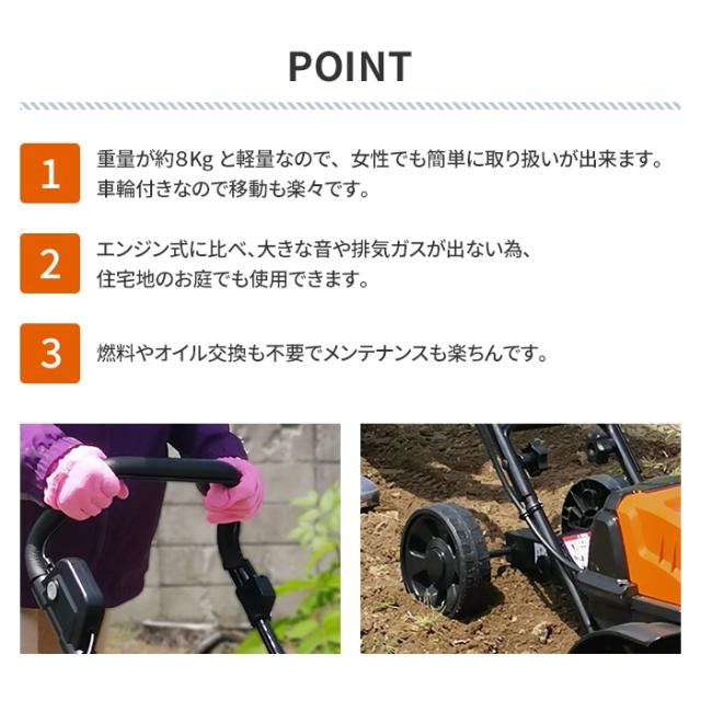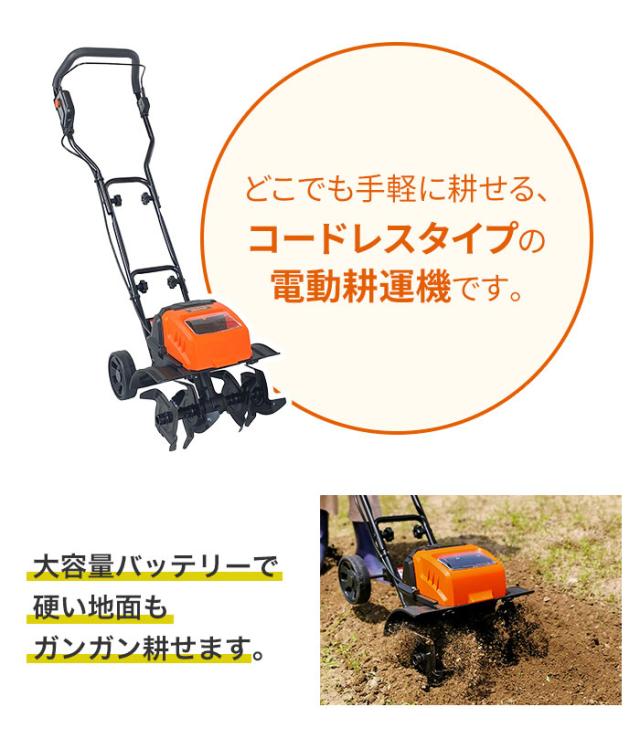 電動耕うん機 充電式 コードレス 電気 軽量 パワフル 家庭用 耕うん機 小型 ミニ 耕運機 畑仕事 ガーデニング 園芸機械 耕す ガーデン 園芸用品 畑 農業機械 除草 雑草 農業