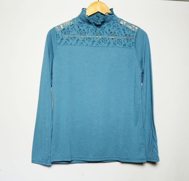 【即納】レース切替ハイネックトップス Tシャツ 長袖 無地 AW 秋冬 新作