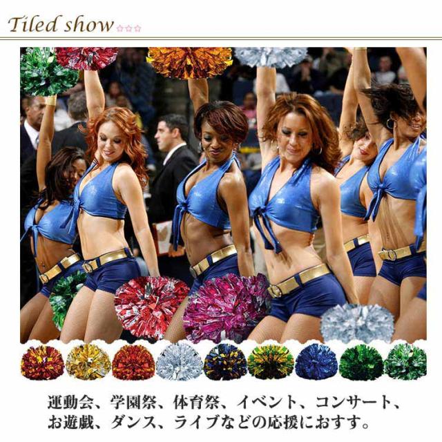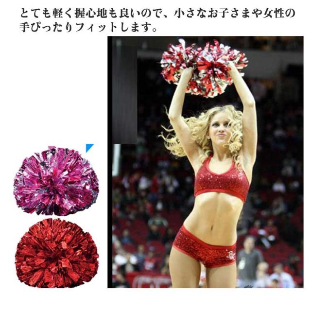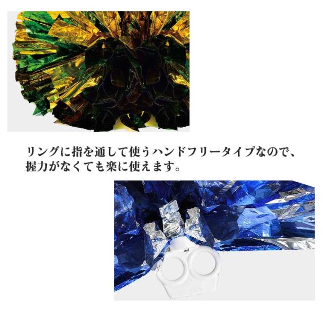 | キラキラでメタリックなポンポンです。 リングに指を通して使うハンドフリータイプなので、握力がなくても楽に使えます。 とても軽く握心地も良いので、小さなお子さまや女性の手ぴったりフィットします。 両手でよく揉むことでポンポンは大きくなります。 運動会、学園祭、体育祭、イベント、コンサート、お遊戯、ダンス、ライブなどの応援におすす。 | |