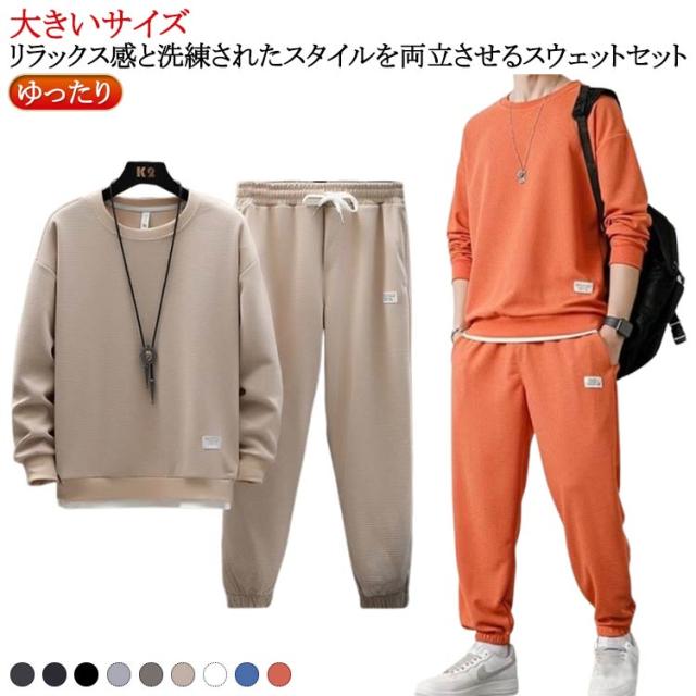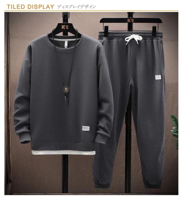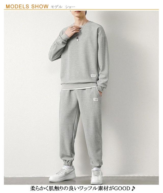 ジャージ スポーツウェア 無地 ジャージ 長袖 上下セット ワッフル編み セットアップ ジョガーパンツ 裾ゴム スウェット 部屋着 ルームウェア 春秋用 ゆったり ランニング ウォーキング 散歩 カジュアル 大きいサイズ