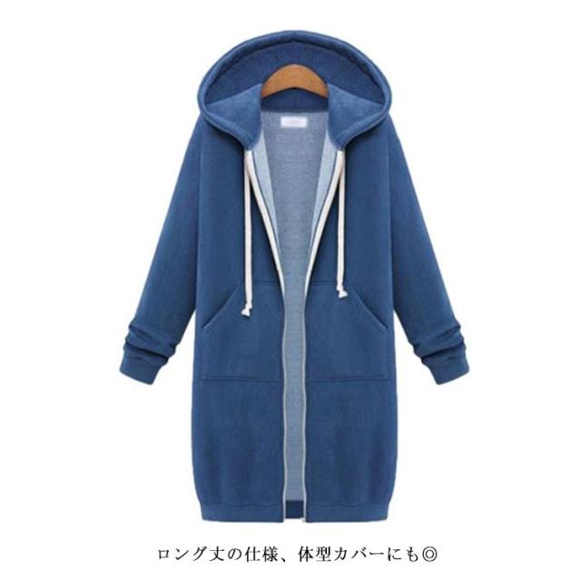 大きいサイズ 防寒 ロングパーカー 無地 コート ロング丈 冬 パーカー 春秋 レディース 大きいサイズ シンプル カジュアル ジップパーカー 体型カバー ゆったり ポケット付き フード付き 20代 30代 40代 ロングコート ゆったり 着?せ 大人女性 快適 ギフト