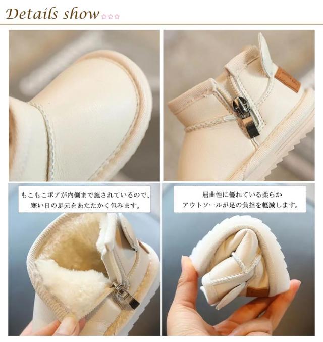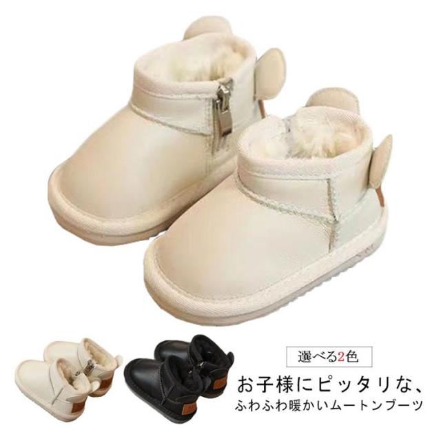 くつ 暖かい ムートン ブーツ 子供靴 子供 無地 ショート丈 耳付き キッズ 冬 靴 ムートンブーツ キッズ レザー 雪遊び 裏ボア こども シューズ 女の子 秋 冬 防寒 暖かい お揃い リンクコーデ 無地 シンプル ムートンブーツ お出かけ 友達