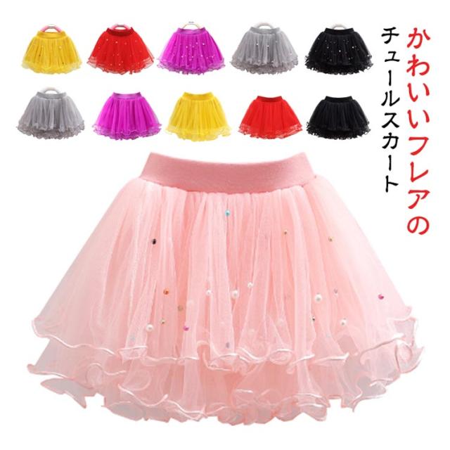 ミニスカート 子供服 ボトムス 女の子 スカート キッズ こども キッズ ウエストゴム パール 可愛い チュール ボリューム感 ふんわり フレアスカート 発表会 春服 秋服 冬服 春秋冬 送料無料 ふわふわ 演出服 イベント