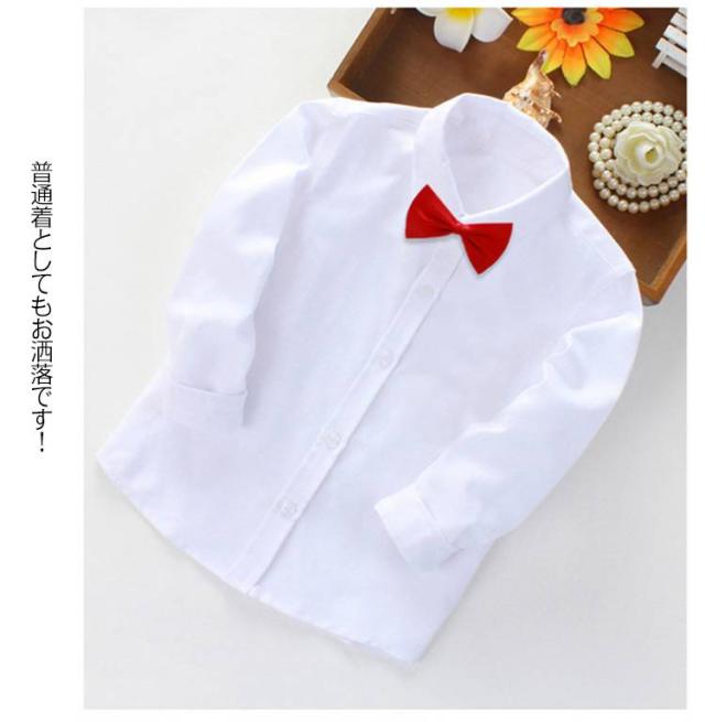 入園 長袖 男子 ホワイト 男の子 シャツ フォーマル 制服 キッズ スクールシャツ 通学 通園 小学校 蝶ネクタイ ジュニア 発表会 スクールシャツ お受験 入学準備 七五三 面接 ワイシャツ ネクタイ ブルー ピンク 90 100 110 120 130 140 150 160 170