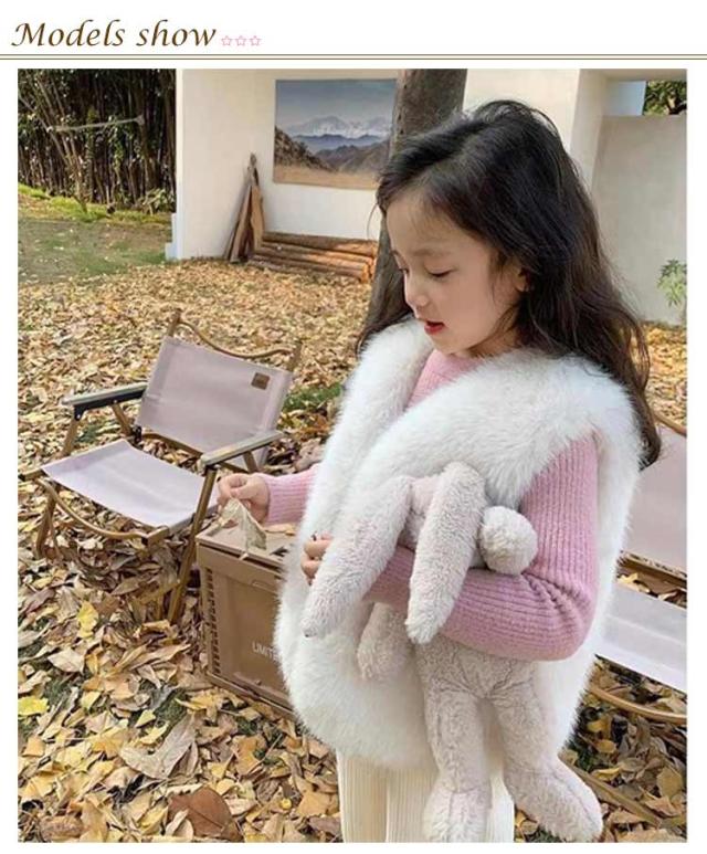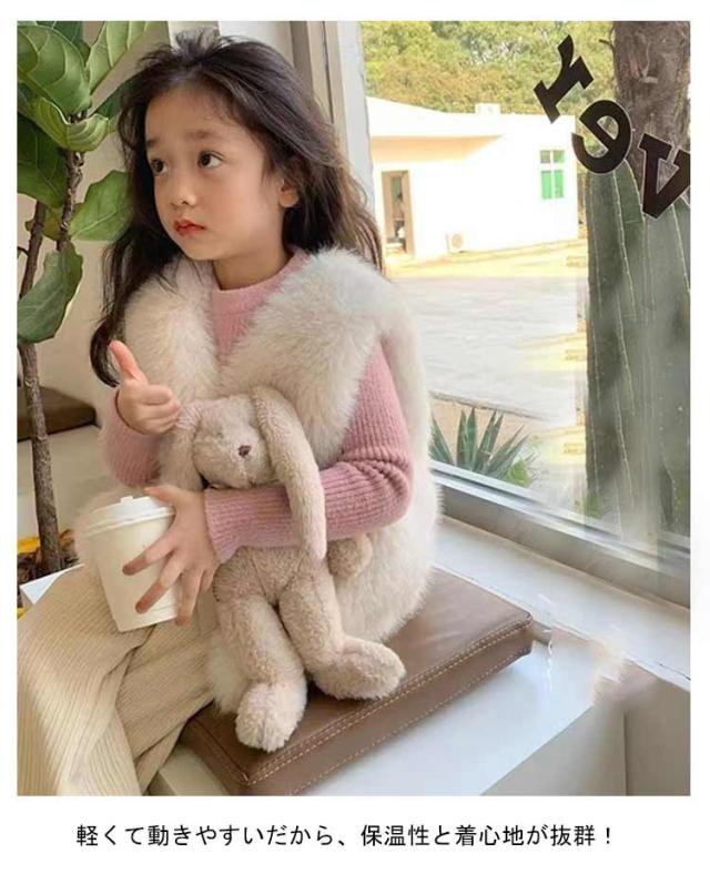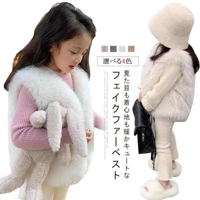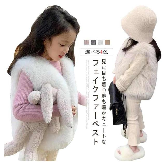 ベスト フェイクファー ジレ 女の子 ファーベスト ふわふわ きれいめ エコファー もこもこ 子ども ノースリーブ キッズ 大人っぽい 暖かい 秋 キッズ おしゃれ 羽織り 可愛い こども 前開き カーディガン Vネック ベビー服 冬 大きいサイズ ギフト プレゼント