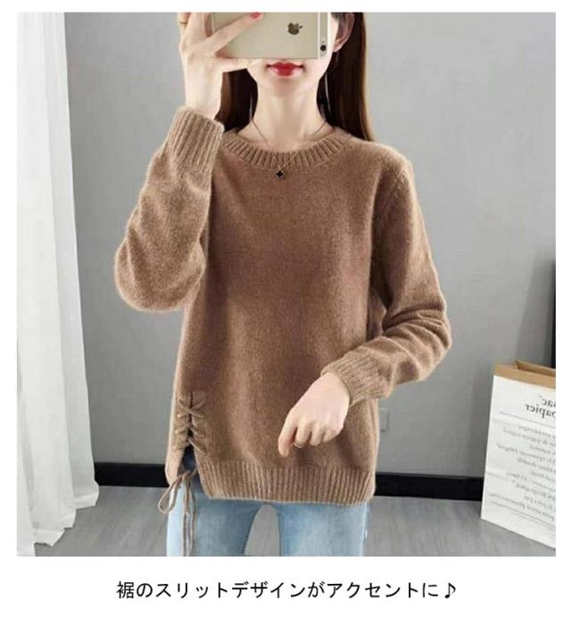 秋冬 ニットセーター レディース セーター ニット ニットソー 大きいサイズ 長袖 セーター 長袖セーター プルオーバー 暖かい 秋 インナー ニットセーター 冬 スリット シンプル トップス 柔らか 暖か 大人 あったか 女性 ギフト プレゼント