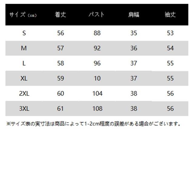| サイズ | S M L XL 2XL 3XL |
