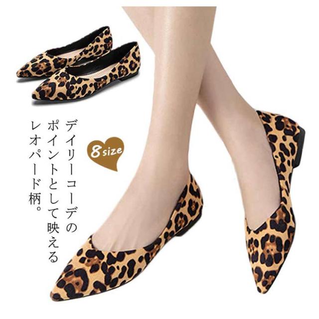 大きいサイズ フラットパンプス 秋冬 ヒョウ柄 ぺたんこ レディース 秋 パンプス 大人 ポインテッドトゥ かわいい ローヒール 春 パンプス 美脚 歩きやすい フラットシューズ 女性 可愛い 滑り止め ギフト プレゼント
