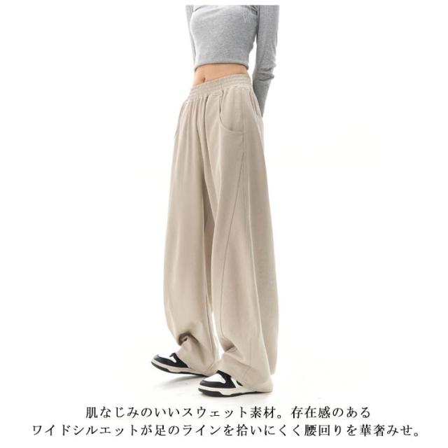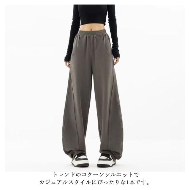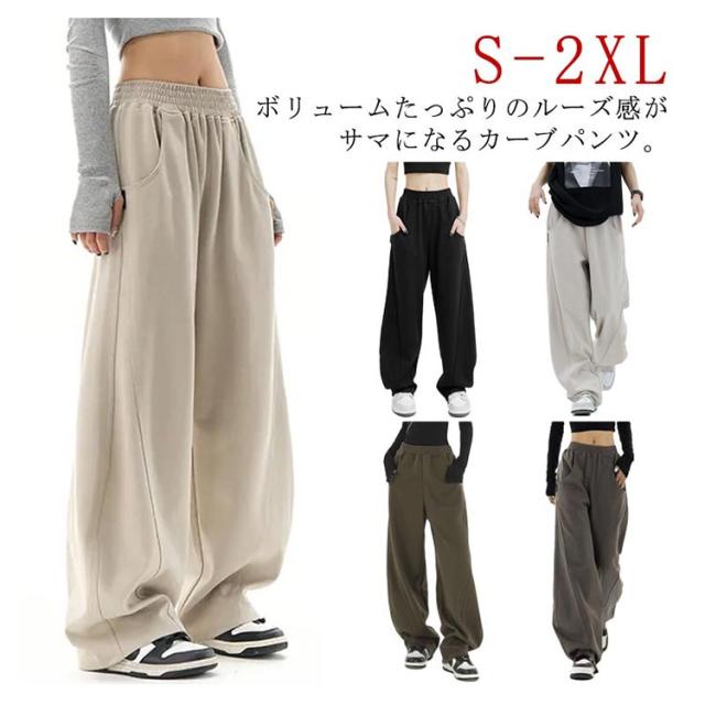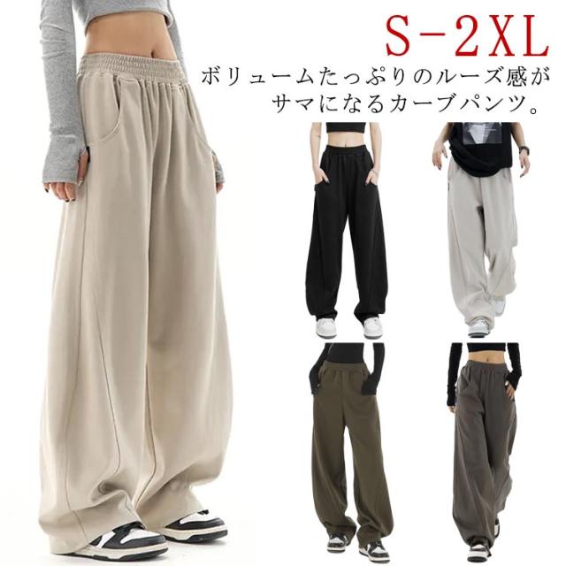 レディース パンツ ゆったり ロングパンツ ワイド スウェット ウエストゴム ワイドパンツ スエット 下半身 ワイド 体型カバー カーブパンツ スポーツウェア ウエストゴム カーブパンツ スエットパンツ バルーンパンツ カジュアル 通勤 部屋着