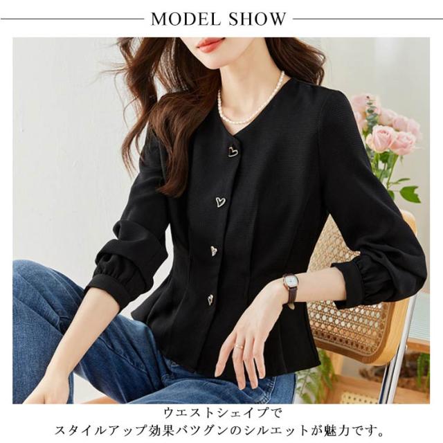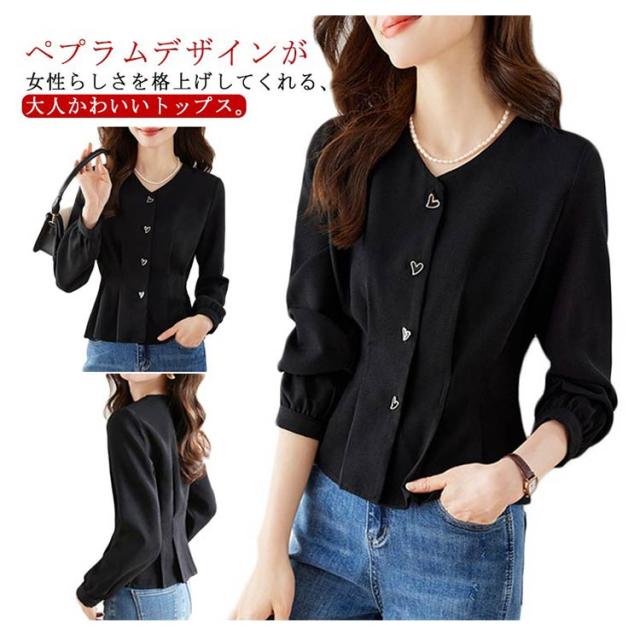Vネック ペプラム 羽織り チュニック ペプラム トップス ブラウスシャツ ブラウス フレア トップス ライトアウター カットソー 長袖 ペプラム ペプラム ウエストシェイプ スタイルアップ オフィス 通勤