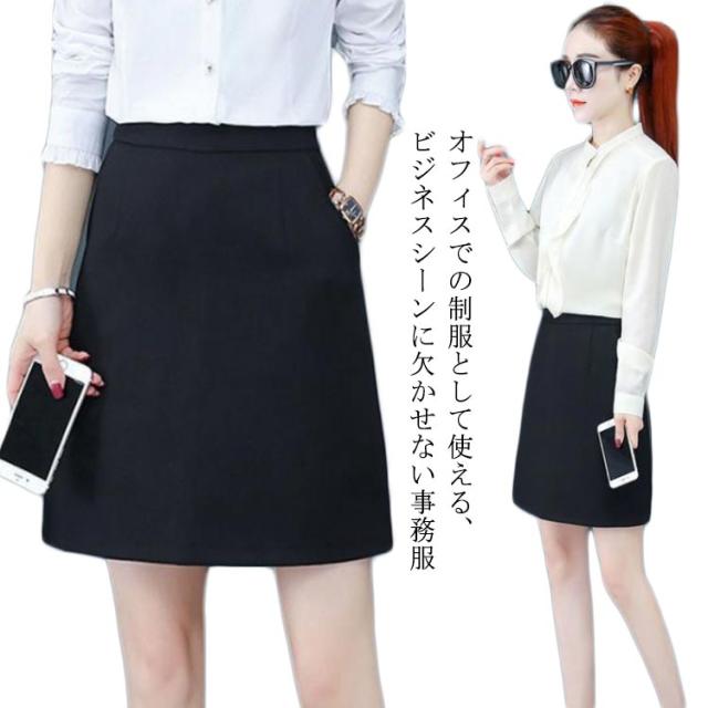 スカート ウェストゴム 事務服 事務服 夏 通勤 タイト ボトムス 春 ポケットあり 秋 春秋 洗える 膝上丈 ビジネス ユニフォーム 事務員 Aライン OL オフィス 大きいサイズ ウォッシャブル お洒落