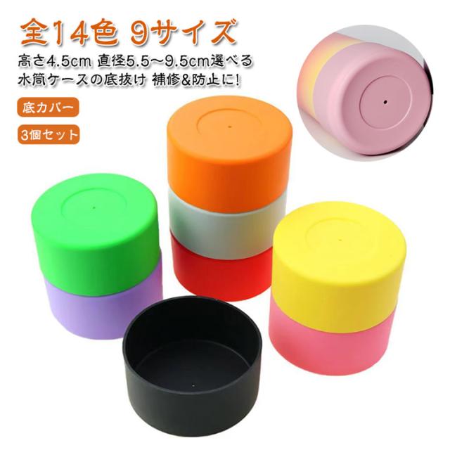 | 【全14色 9サイズ】 高さ4.5cm 直径5.5〜9.5cm選べる 水筒ケースの底抜け 補修&防止に! 底カバー 【3個セット】 カラーバリエーション豊富な水筒底カバー ボトル底の傷防止はもちろん滑り止めや防音対策にも♪ 水筒やタンブラーのカラーを選ばないクリアカラー、女性に人気のベージュやピンクなどの他カラーもお取り扱い中です。 | |