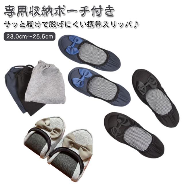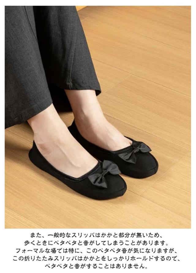 折りたたみ おしゃれ リボン 収納ポーチ付き レディース 携帯シューズ 携帯用スリッパ スリッパ 旅行 室内履き 持ち運び 収納ポーチ付き かかと付き 滑りにくい 上履き オフィス 置き靴 幼稚園 参観日 学校 フォーマル お受験