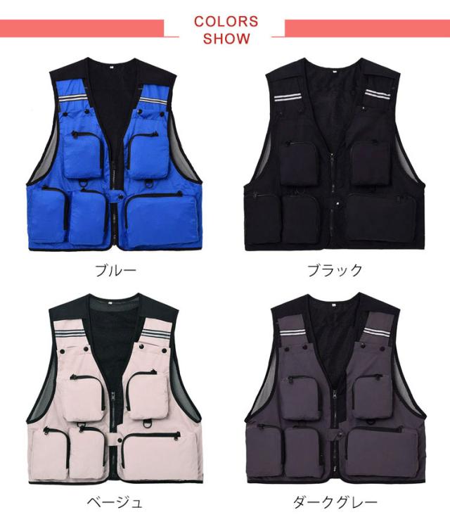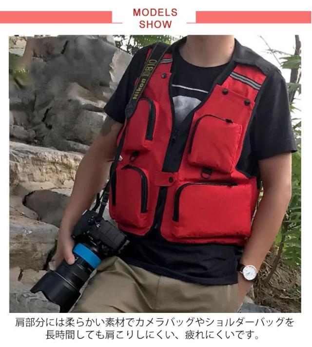 | アウトドアや作業にもおすすめのメッシュベスト! 肩部分には柔らかい素材でカメラバッグやショルダーバッグを長時間しても肩こりしにくい、疲れにくいです。 キャンプ、釣り、ウオーキング、山歩き撮影など色々なシーンで活躍してくれます。 ポケットが多く機能性の高いフィッシングベストはカバンを持たなくていいので、手ぶら派の男性におすすめ◎ 夏はTシャツに上に、冬はアウターの下に着てもOK!旅行先にも持ち運べる軽量なベストです。 機能的でバッグ要らず!お散歩や釣りはもちろん作業着のお供にもおすすめです。 | |