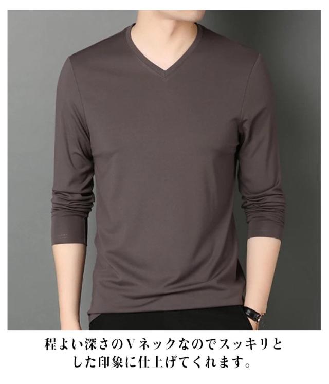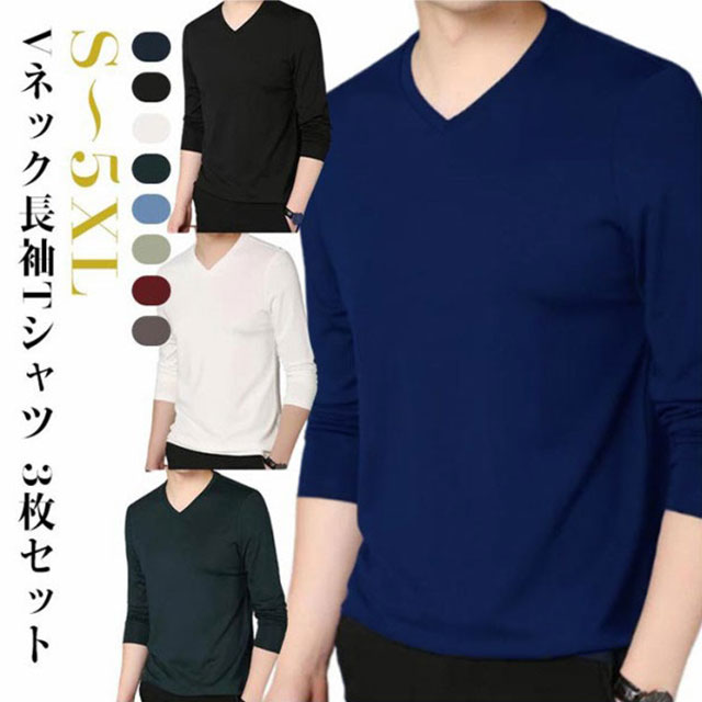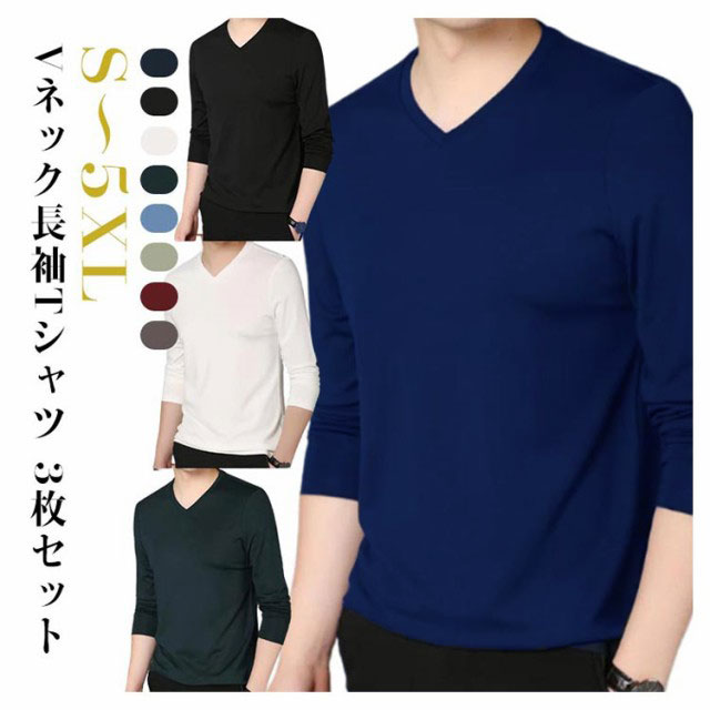 【3枚セット】 長袖 tシャツ メンズ vネック Tシャツ カットソー タイト フィット インナー ロンT ロングTシャツ おしゃれ 無地 シンプル 男性 トップス 肌着 重ね着 夏 秋 秋服 送料無料