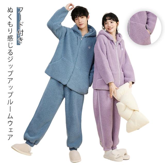 ジップアップ 着る毛布 ポケットあり 暖かい 裏起毛 フード付き ルームウェア ナイトウェア レディース 着る毛布 前開き メンズ 厚手 パジャマ ウォッシャブル 防寒 部屋着 寝間着 長袖 もこもこ 冬 節約 節電 ギフト