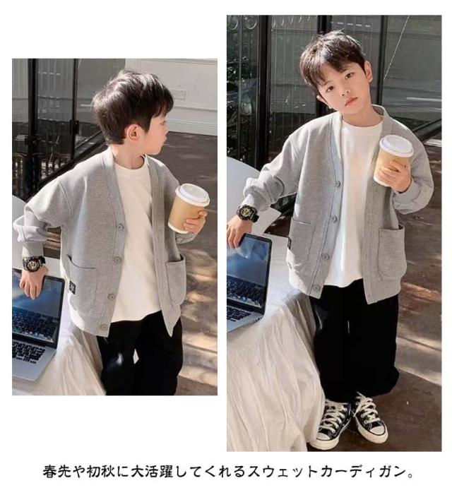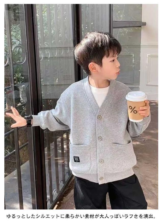 キッズ 女の子 アウター スウェット カーディガン 羽織り 幼稚園 カーデ 子供服 男の子 スウェット 小学生 低学年 高学年 vネック カジュアル 韓国こども服 ビッグシルエット 通学 通園 体温調節 秋服 秋物 送料無料