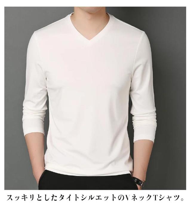 【3枚セット】 長袖 tシャツ メンズ vネック Tシャツ カットソー タイト フィット インナー ロンT ロングTシャツ おしゃれ 無地 シンプル 男性 トップス 肌着 重ね着 夏 秋 秋服 送料無料