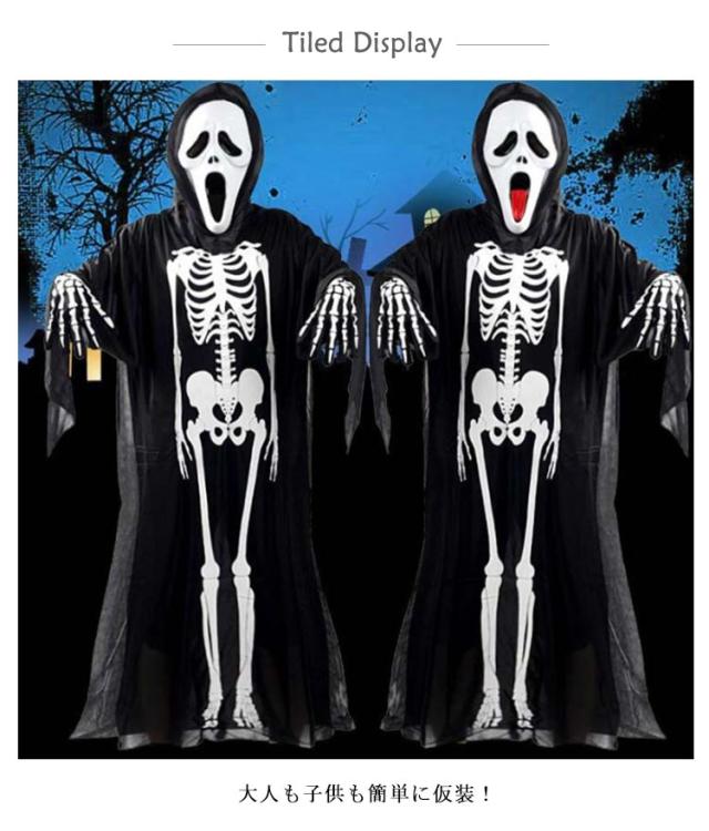 | マスク+骸骨マント+骸骨手袋 3点セット ハロウィン衣装 大人も子供も簡単に仮装! | |