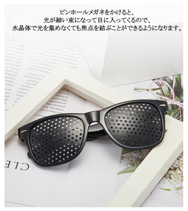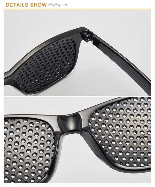 | 2個セット 視力回復に!ピンホールメガネ 全面穴、5穴、3穴の3モデルセットとなっております。 パソコンやスマートフォンを長時間使用される方におすすめのアイテムです♪ ピンホールメガネをかけると、光が細い束になって目に入ってくるので、 水晶体で光を集めなくても焦点を結ぶことができるようになります。 無数の小さな穴から見るだけで、簡単にリフレッシュ効果が期待できます。 | |