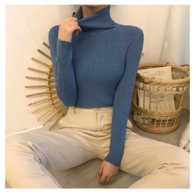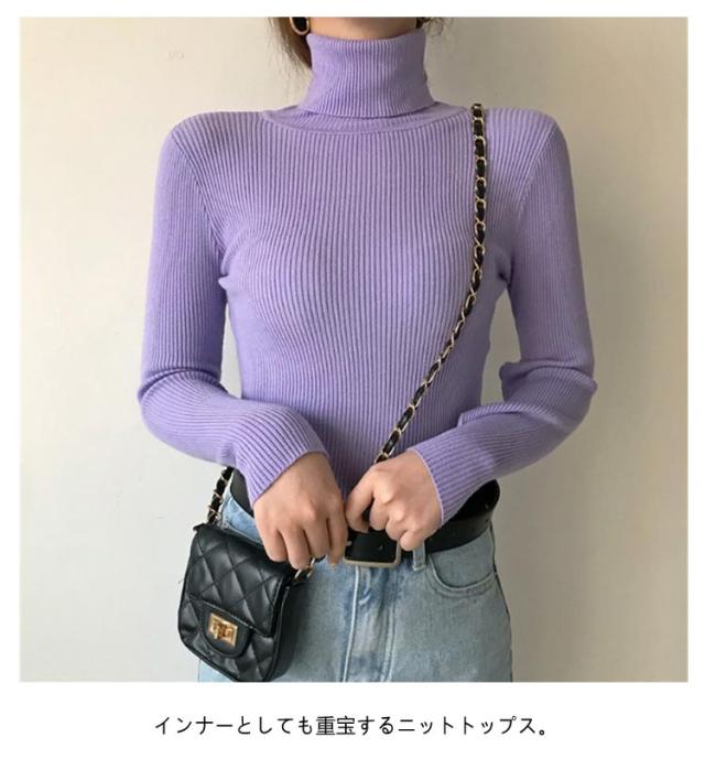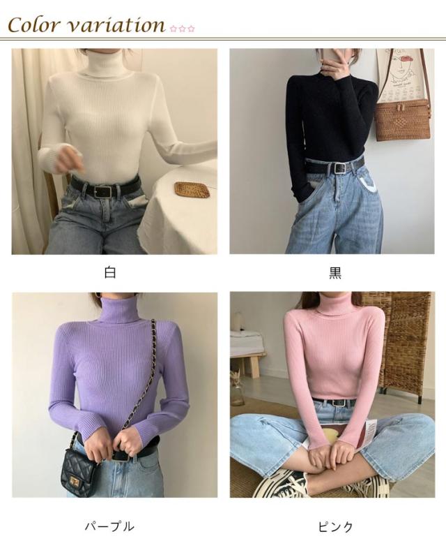 タートルネック ニット タートルネック 無地 秋冬 シンプル インナー トップス リブニット リブ グレー おしゃれ ニットソー セーター 白 黒 ハイネック ブルー 着回し 定番 デイリー お出かけ