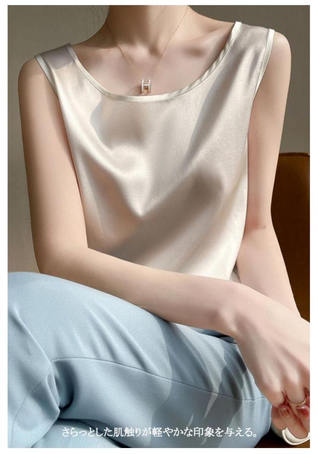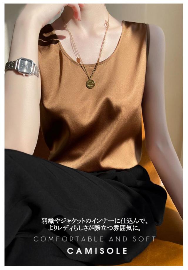 | 12colors! 艶やかな光沢が上品なサテン調タンクトップ しわになりにくく滑らかで上質な光沢感 さらっとした肌触りが軽やかな印象を与える 薄手の綺麗見えしてくれる素材で、どんなコーデにも合う 羽織やジャケットのインナーに仕込んで、よりレディらしさが際立つ雰囲気に。 | |