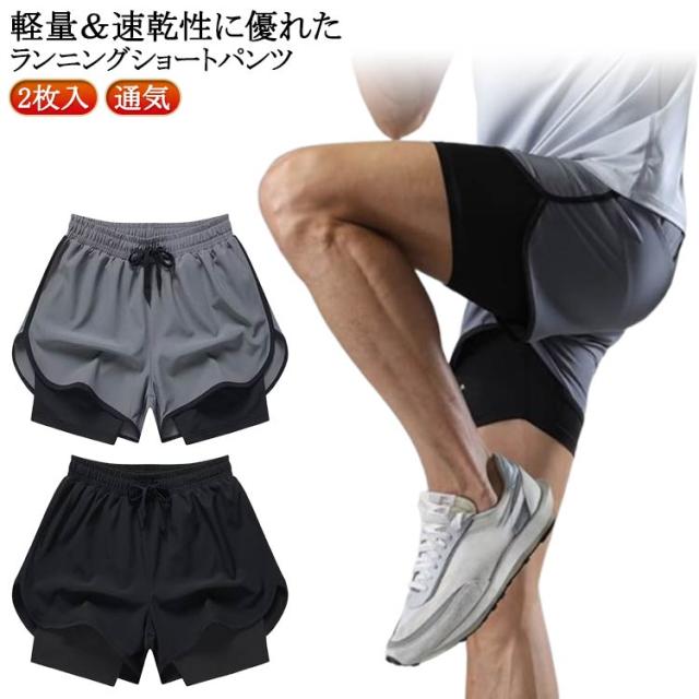 2枚入 春 メンズ インナー付き ハーフパンツ 半ズボン 動きやすい トレーニングウェア ランニングパンツ スポーツウエア ショーパン 通気 ショートパンツ 夏 短パン 2枚入 バスケパンツ ランパン 吸汗速乾 スパッツ 部活 高校生 中学生 練習 運動