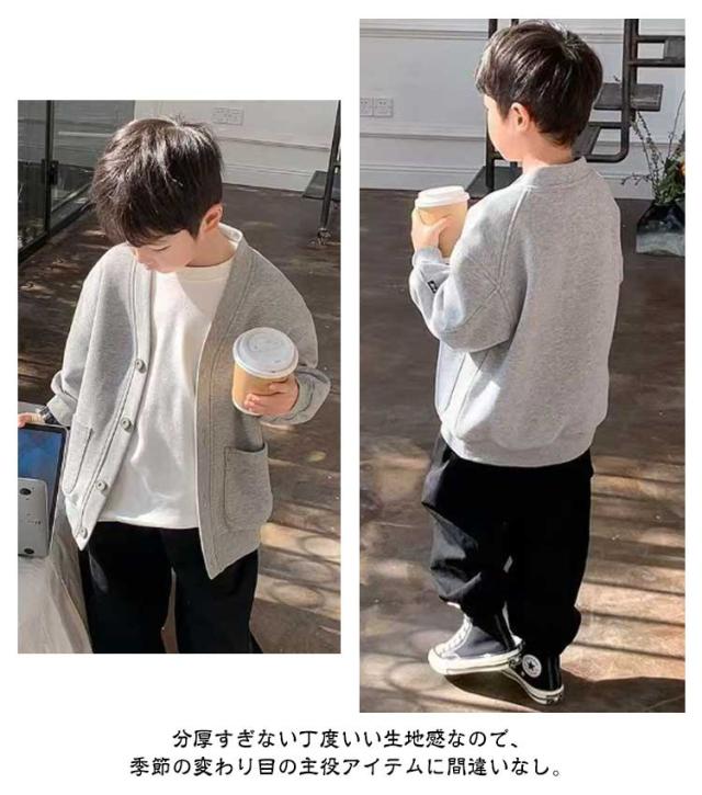 女の子 幼稚園 カーディガン 子供服 カーディガン vネック キッズ スウェット カーデ 男の子 アウター 小学生 低学年 高学年 スウェット カジュアル 韓国こども服 ビッグシルエット 通学 通園 体温調節 秋服 秋物 送料無料