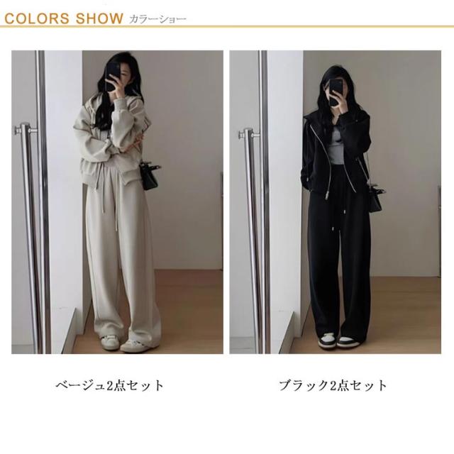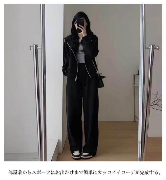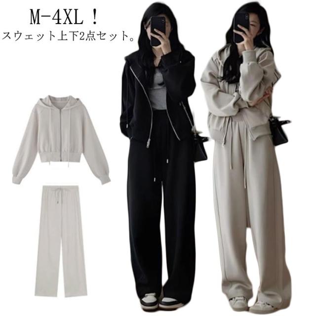 カジュアル セットアップ 2点セット 綿 長袖 パーカー 上下セット レディース ワイドパンツ スポーツ ルームウェア 春 秋 冬 スウェット ロングパンツ 着痩せ ジャージ 部屋着 韓国ファッション スウェット 運動着 大人可愛い 大きいサイズ