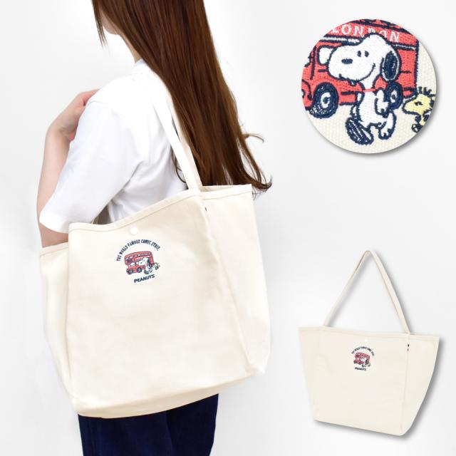 スヌーピー トートバッグ 大きめ 肩掛け 綿 コットン マチ付き ロンドン ルートマスター 二階建てバス 刺? レディース 女子 通勤 通勤 旅行 お出かけ お買い物 塾バッグ レッスンバッグ 大人 学生 子供 可愛い かわいい キャラクター グッズ