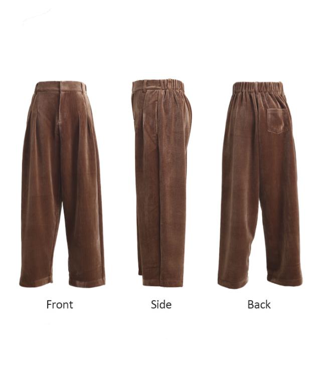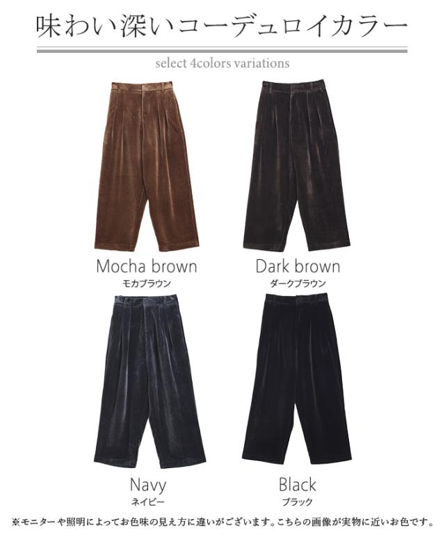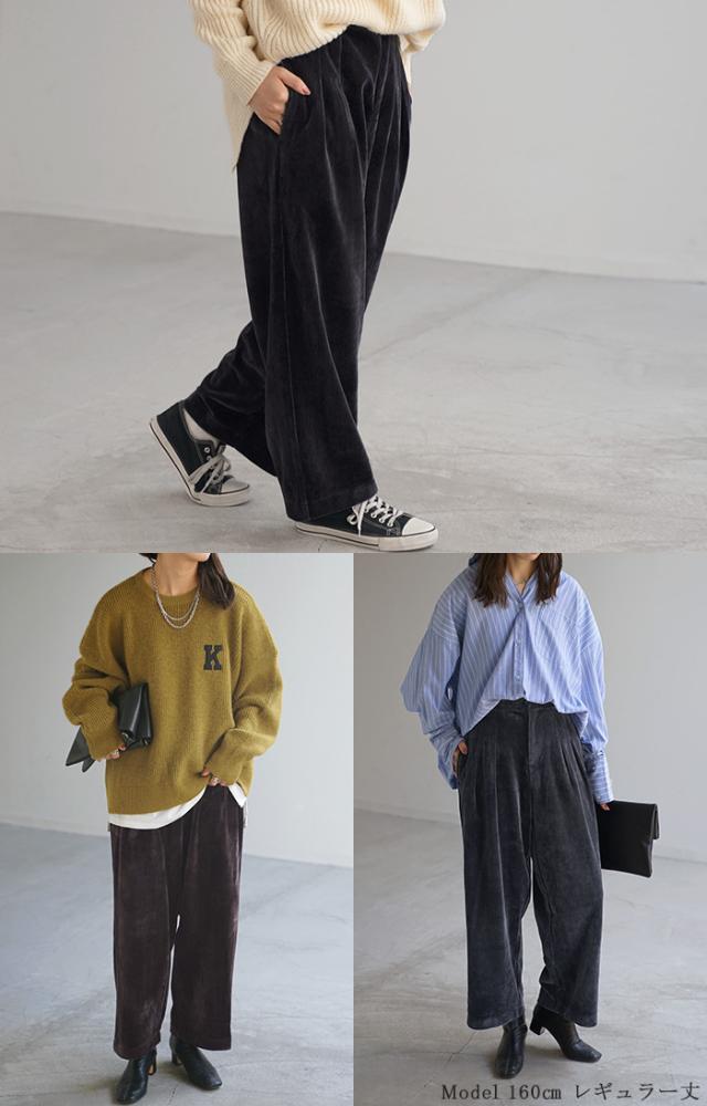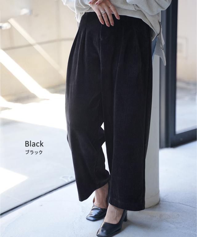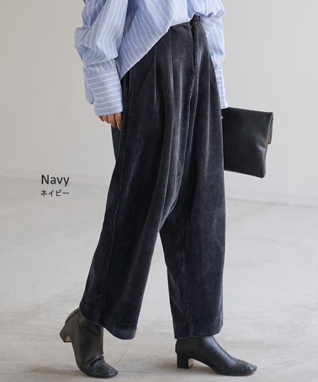 パンツ コーデュロイ サーカスパンツ ベロア レディース ボトムス ボトム ズボン ずぼん 裏起毛 無地 ワイド コクーン コーデュロイパンツ 暖かい ストレッチ ウエストゴム タック 大きいサイズ 体型カバー 黒 ネイビー 秋 冬 HUG.U 秋新作