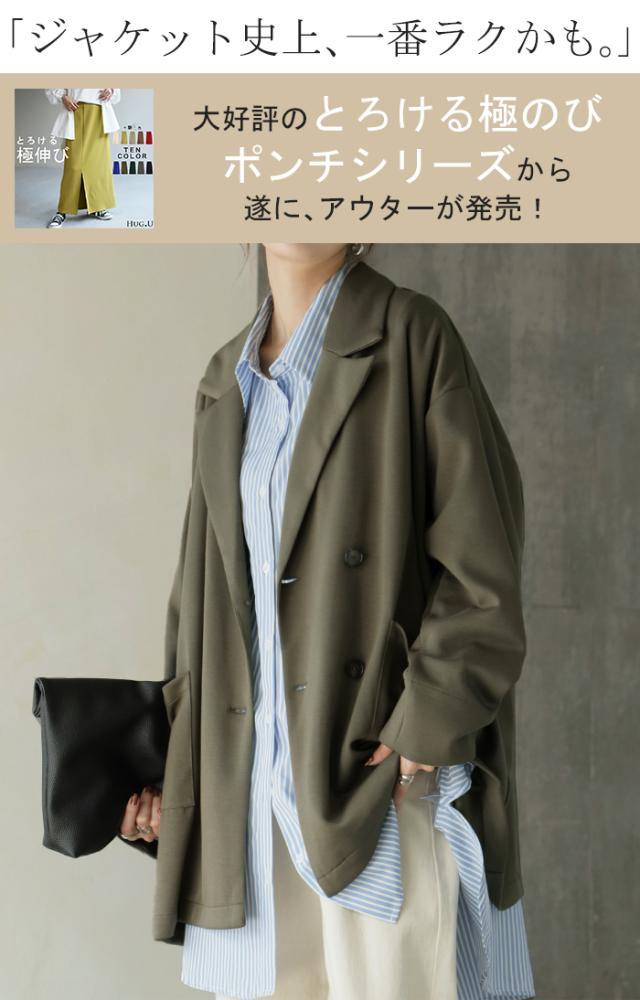 ジャケット ポンチ テーラード レディース アウター ロング テーラードジャケット お尻が隠れる ドロップショルダー ドルマン オーバー ストレッチ シワになりにくい 無地 長袖 Vネック 大きいサイズ 体型カバー きれいめ 黒 ベージュ 秋 冬 HUG.U 秋新作
