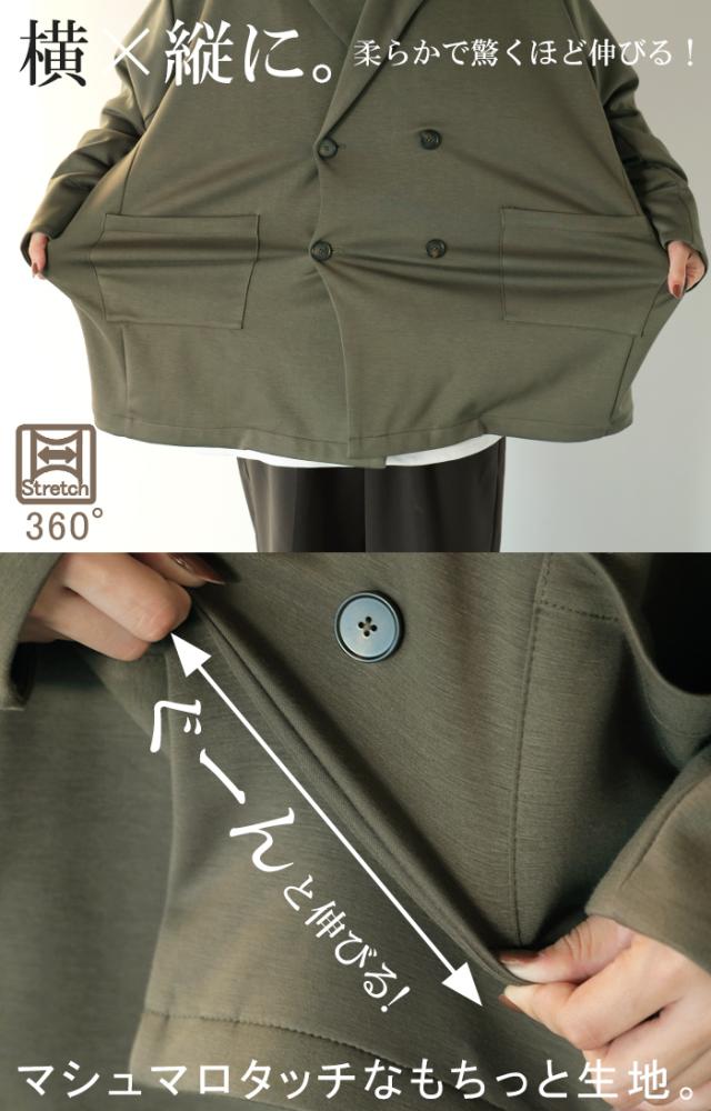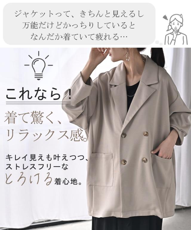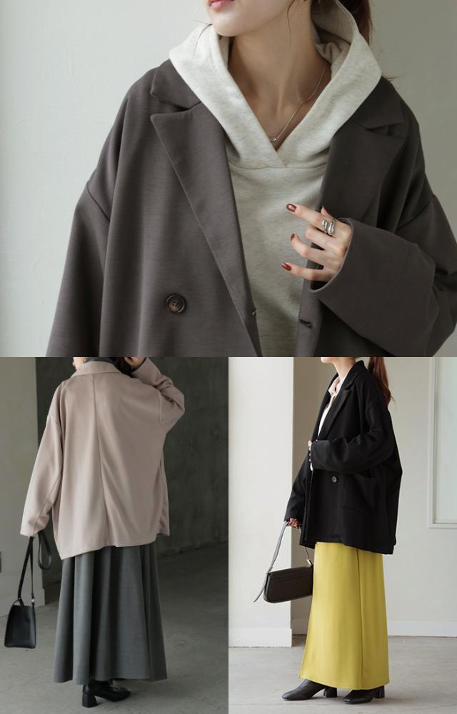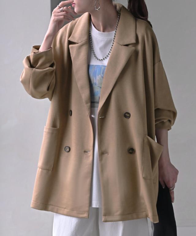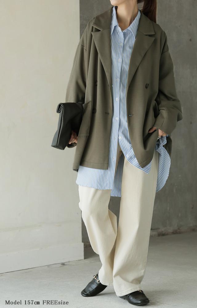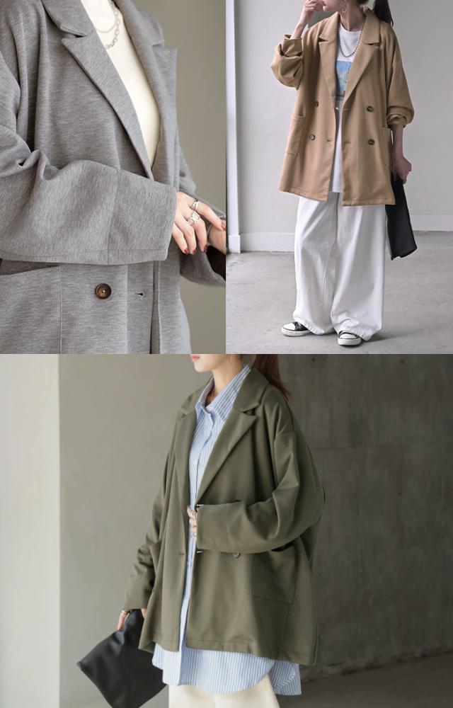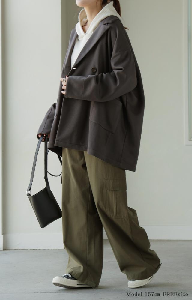 ゆったりとした落ち感とダブルボタンが魅力のテーラードジャケットです。