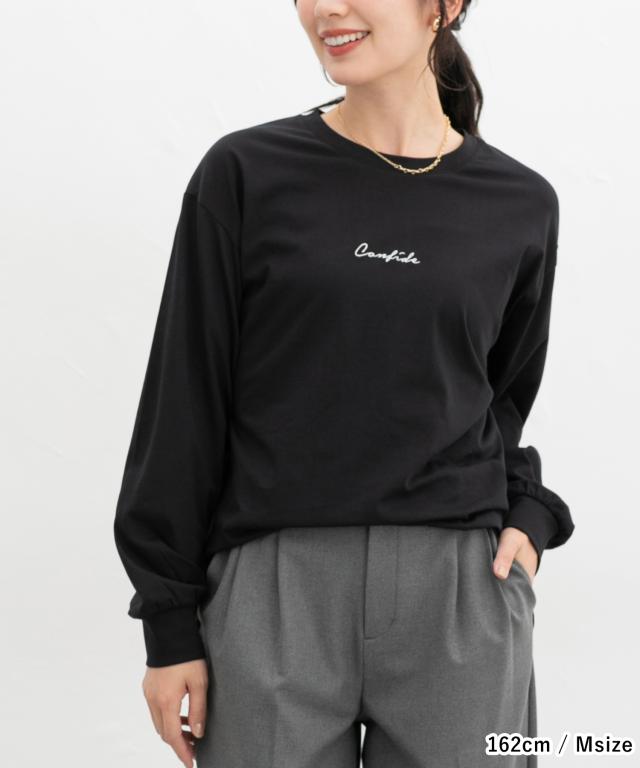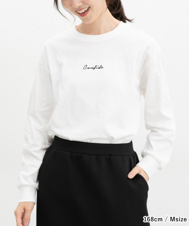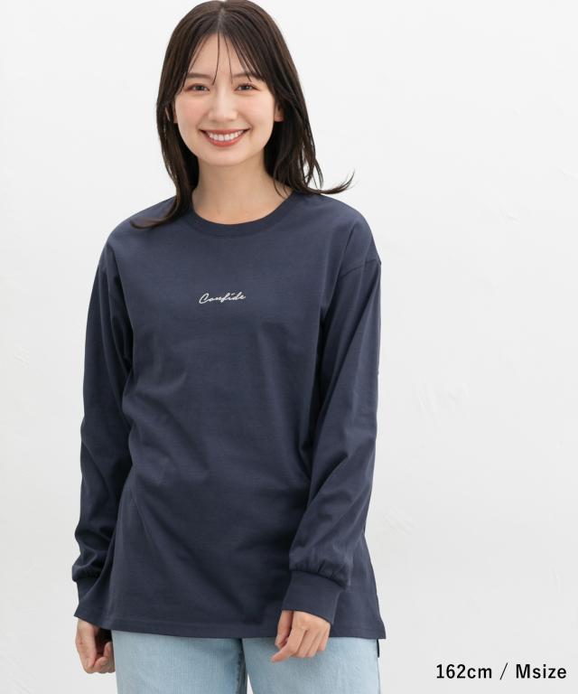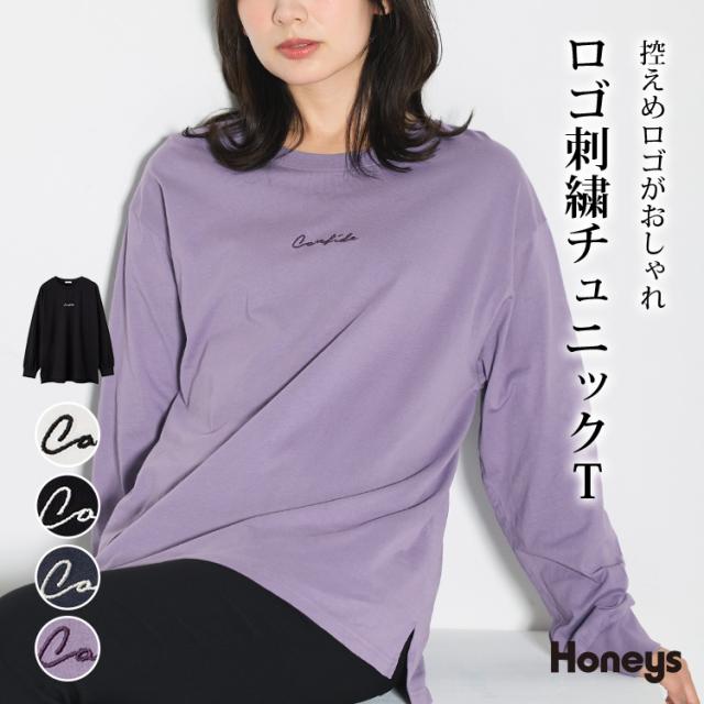 トップス カットソー 長袖 コットン 綿 Tシャツ ロンT 長袖Tシャツ チュニック レディース Honeys ハニーズ ロゴ刺繍チュニックT