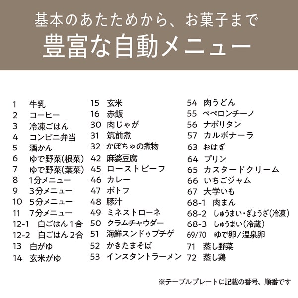 ●自動メニューは庫内フラットテーブルに印字