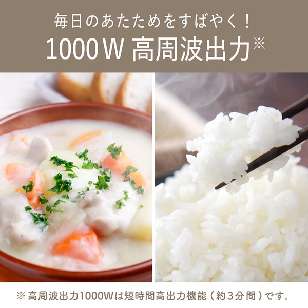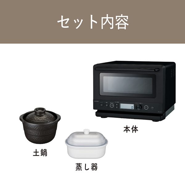 電子レンジで炊飯・調理が可能な土鍋と本格的な蒸し料理が楽しめる蒸し器が付属 ■本体サイズ:(幅)41.5 × (奥行)35 × (高さ)32cm ■本体重量:約9500g ■庫内サイズ:約330(W)×300(D)×170(H)mm ■電源:AC100V 50/60Hz共用 ■コードの長さ:約1.4m ■庫内容量:18L ■付属品:蒸し器、土鍋 ※記載は商品仕様の一部です。仕様説明不足等の理由での返品はできません。特に適合等は必ずご確認ください。