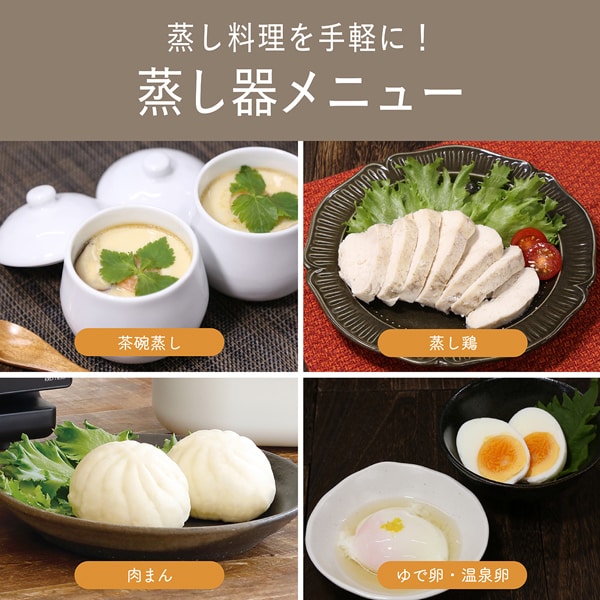 ●蒸し器で冷蔵庫にある身近な食材も調理可能。ゆで卵も作れます。