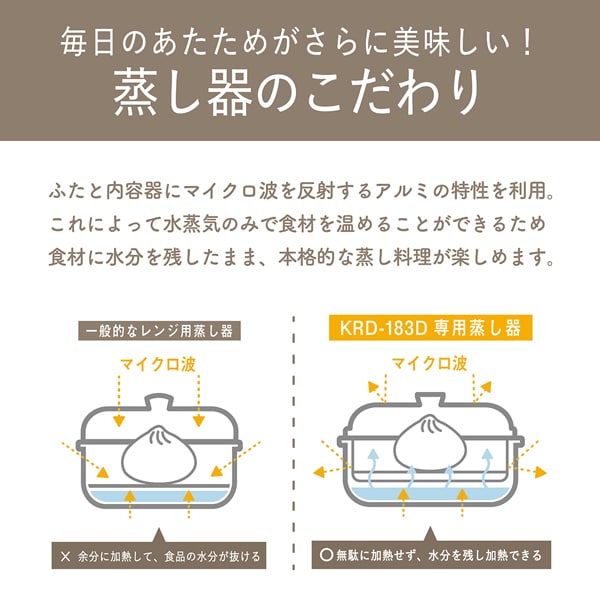●マイクロ波を遮断することで水蒸気のみで加熱が可能な本格蒸し器