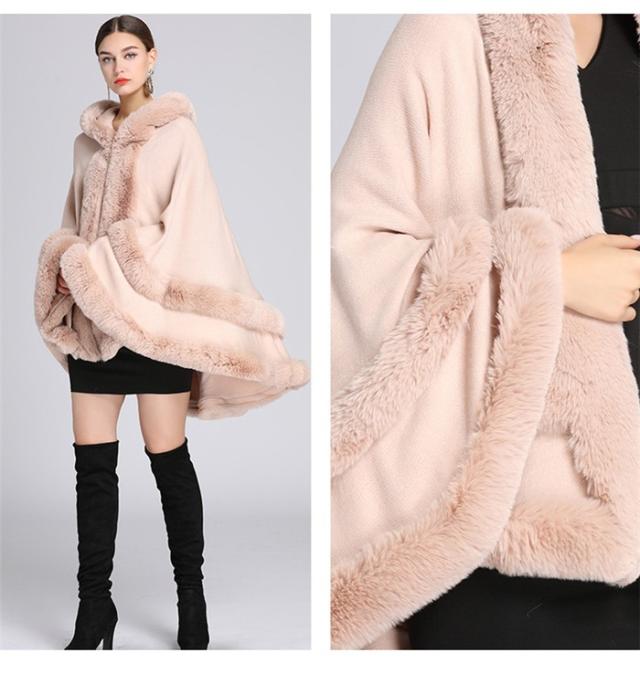 6カラー ケープコートファー付き ポンチョコート ファーコート 肩掛け レディース ケープ 羽織 アウター マント フェイクファー カシ