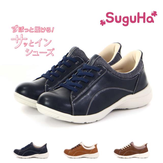 スグハ Suguha レディース スニーカー ハンズフリーシューズ ハンズフリースニーカー 3E 幅広 ワイド ゆったり スリッポン 軽い 軽量 ゴム紐 ローカット シンプル 1185