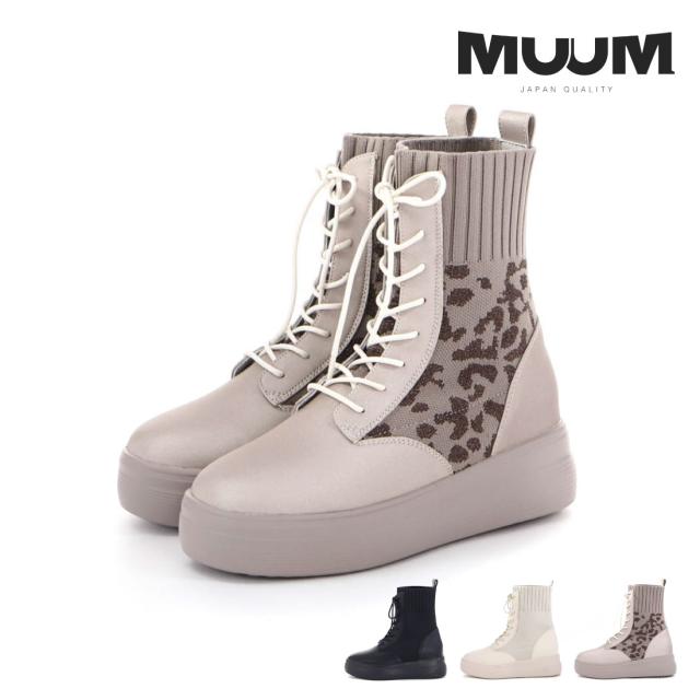 ムーム MUUM レディース ブーツ レースアップ ニットブーツ 1741 ミドルブーツ 厚底 軽量 軽い 疲れにくい 歩きやすい