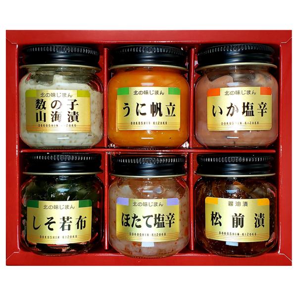 数の子山海漬、うに帆立、いか塩辛、しそ昆布、ほたて塩辛、松前漬、6種類セットとなっております!