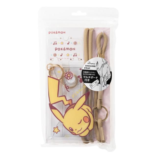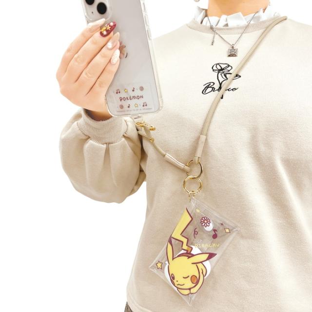 ポーチ付ショルダーストラップ ポケモン ピカチュウ キャラクター グッズ スマホに挟める 挟み込みタイプ かわいい クリアポーチ 小物入れ 丸紐 肩掛け