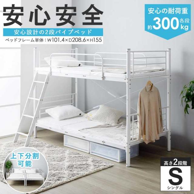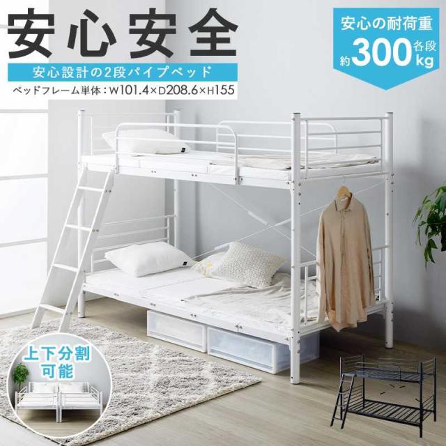 2段ベッド 二段ベッド 2段ベット パイプベッド キングベッド キングサイズ 頑丈&安全設計の2段パイプベッド