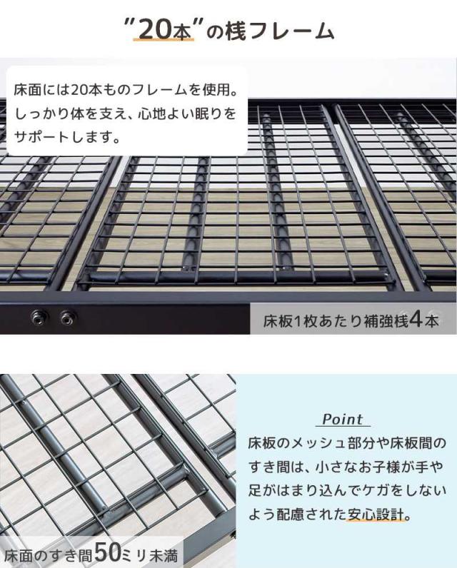 ・床面には20枚の桟フレームを使用し、しっかりと体を支え、心地よい眠りをサポートします。